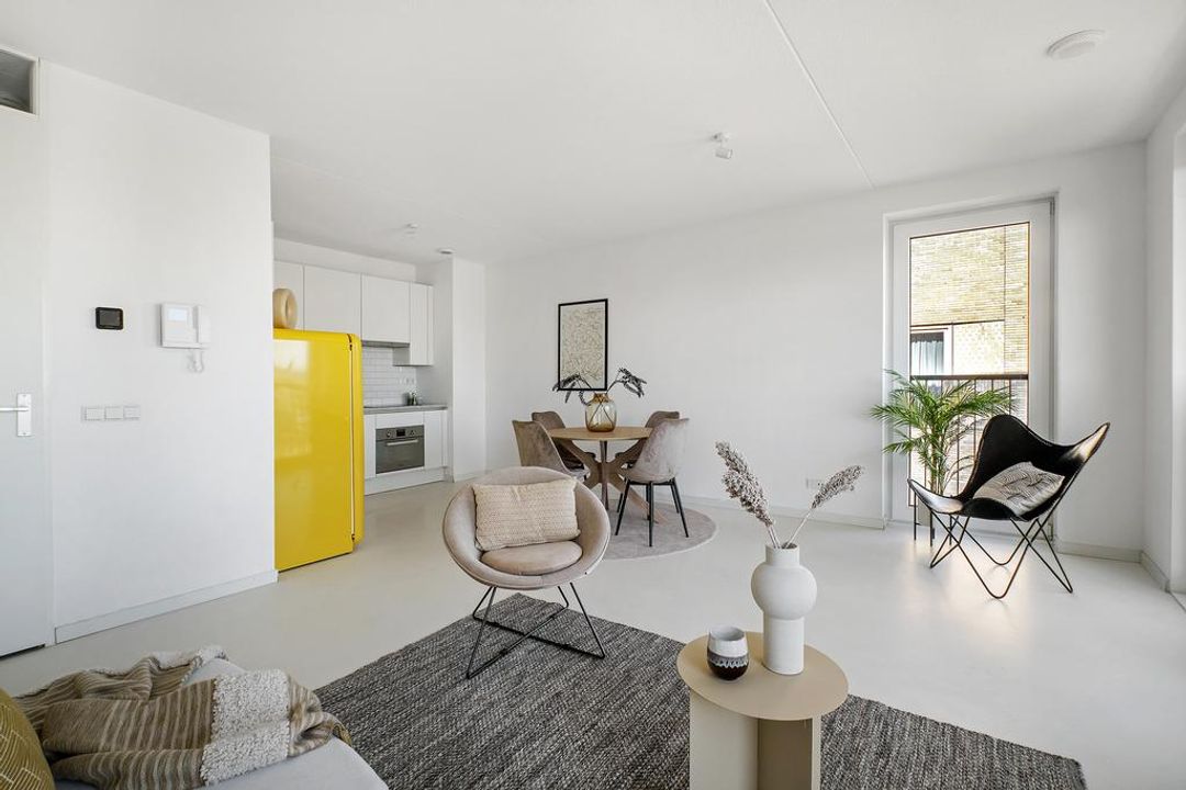 De ruime woonkamer heeft een zee van licht en diverse grote raampartijen. Naast openslaande deuren naar een Frans balkon heeft u hier ook nog de beschikking over een ruim balkon, welke tevens vanuit de 2e slaapkamer te bereiken is. Het balkon ligt op het oosten en heeft een vrij en weids uitzicht over het park / de grootste urban skate-baan van Europa met diverse sportactiviteiten. Dit is met recht een uniek uitzicht, waarbij groen en rustig wandelen kan worden afgewisseld met dynamiek en sport.
