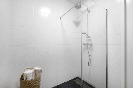 The modern bathroom has a walk-in shower and a washbasin. In addition, the flat has a separate toilet with washbasin and a separate laundry room.